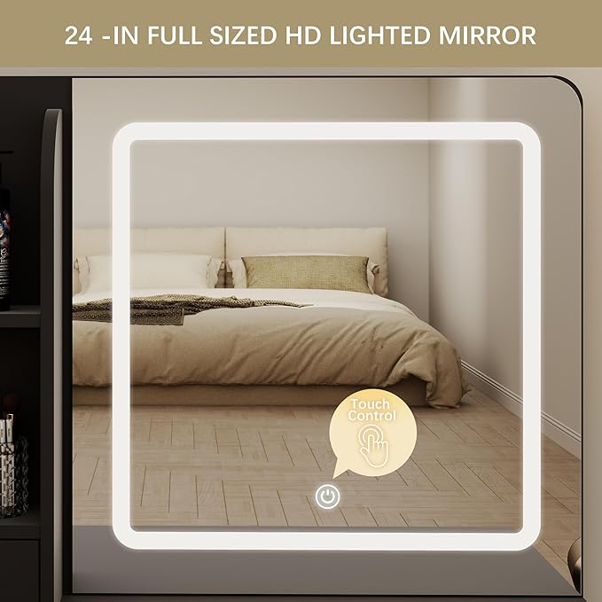 - 【Reassuring After-Sales Experience】The vanity mirror with lights desk and chair with storage contain all parts, detailed instructions and tools in one package. Recommended to follow every step in the instructions. If you have any questions about our products before or after purchasing, please contact us anytime and our friendly service team will get back to you within 24 hours.
