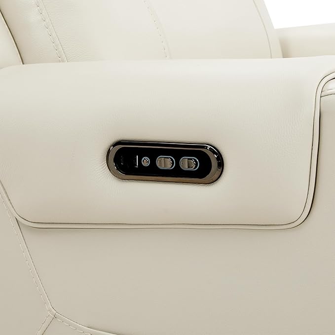 Watson & Whitely Genuine Leather Power Recliner Chairs for Adults, Lay Flat Recliner with Power Headrest, USB Ports and Cup Holders, Electric Reclining Sofa for Living Room, Bedroom, Cream