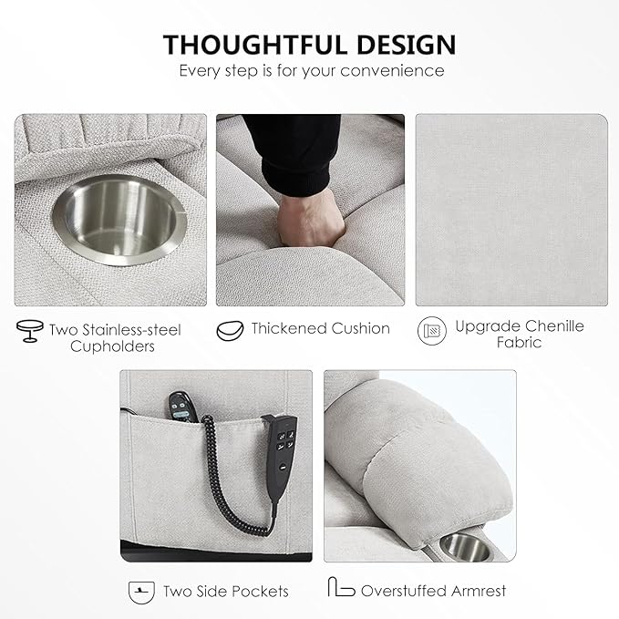 - Cup Holders and Side Pockets: The big recliner chair oversized comes with two stainless steel cup holders and side pockets. You can have a drink while relaxing and easily get essentials from the side pockets. These designs greatly enhance your wide recliner chairs for adults experience.