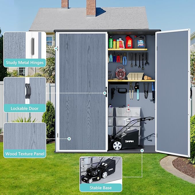 - Sturdy Floor Included – This outdoor storage shed comes with a durable plastic floor, enhancing stability while keeping stored items elevated and protected from damp ground.