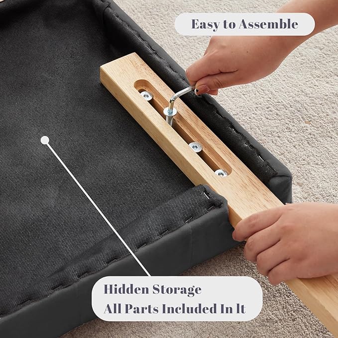 - 【PACKAGE DETAIL】A package contains a headboard panel, two wooden legs, and a kit of parts. All parts are included in back compartment!