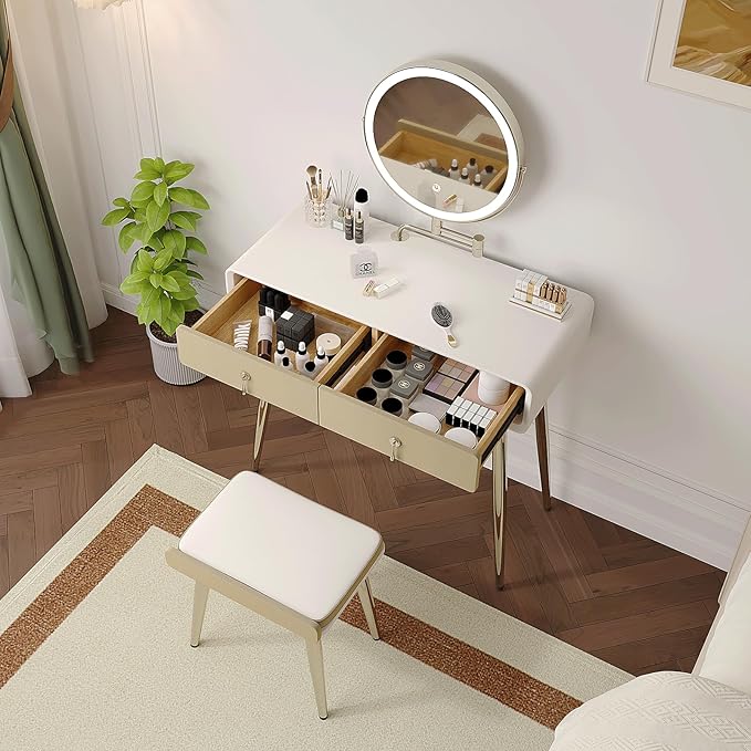 - ✅ Compact with Storage: Sized at 15.7"D x 31.5"W x 29.5"H, this small vanity includes 2 drawers to keep your beauty essentials organized.