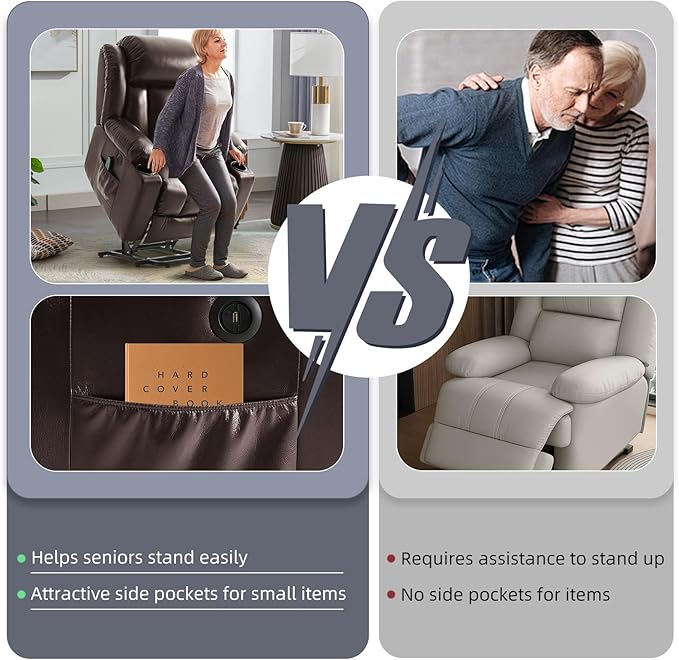 - [Electric lifting and standing assistance]Our balance lifting mechanism is driven by a powerful German OKIN motor, providing seamless standing assistance. Smoothly enhancing the overall stability of the chair, allowing users to effortlessly ascend without putting pressure on their back or knees. This feature is particularly beneficial for elderly people, pregnant women, or those who have difficulty standing from a sitting position