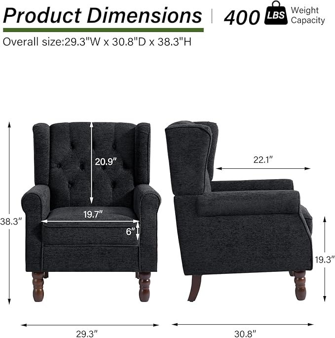 - High Back Accent Chair: The wingback of living room chairs is higher, which can better relieve the pressure on the back and waist, and bring a comfortable sitting experience