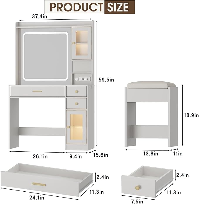 - Ample Storage: One large drawer and two smaller drawers provide plenty of space to store your makeup, brushes, and other essentials. The included cushioned stool offers comfort and support during long makeup sessions