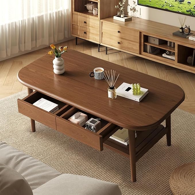 - 【Walnut Wood Vintage Style Coffee Table】With the unique warm brown tone and delicate texture of walnut wood, it infuses a mid-century modern vibe into the living room. The clean lines and open structure complement each other, and the calm texture of the walnut color can not only blend into a simple style but also echo with retro soft furnishings, easily enhancing the space's elegance.