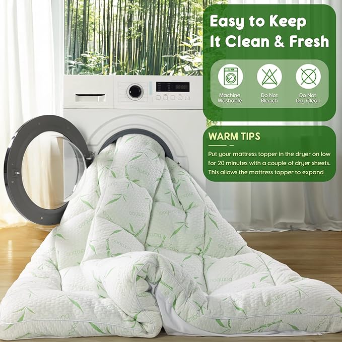 - 【Luxury Upgrade for All Sleepers】 Ideal for side, back, or stomach sleepers, this topper transforms firm beds into pressure-relieving clouds. Combines the plushness of memory foam with the cooling luxury of bambu for hotel-quality rest.