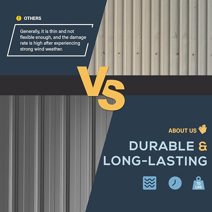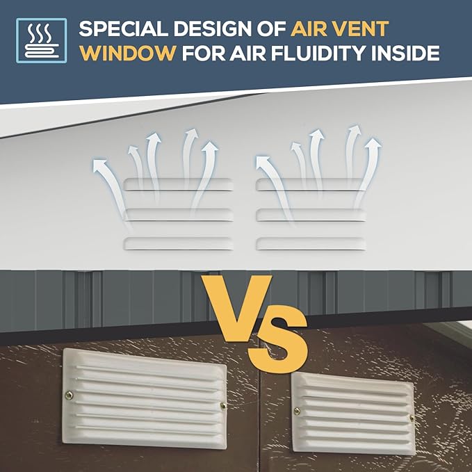 - Sturdy & Durable: Upgrades to each metal plate result in the shed weighing 73 pounds, surpassing cheaper alternatives and significantly enhancing stability. With outstanding wind resistance of approximately 54 miles per hour, it can withstand harsh weather conditions.