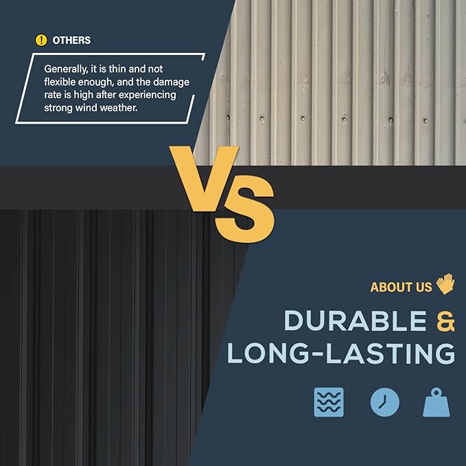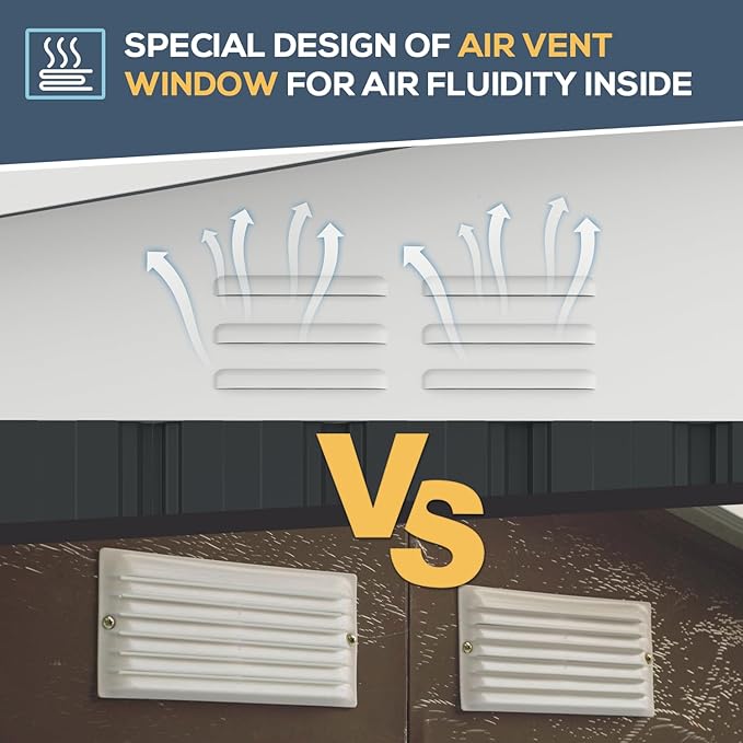 - Robust and Resilient: The inclusion of enhanced metal plates contributes to the shed's substantial weight of 210 lbs, outclassing cheaper alternatives and significantly boosting stability. Designed to endure severe weather conditions, it offers remarkable wind resistance, withstanding speeds of up to 70 mph