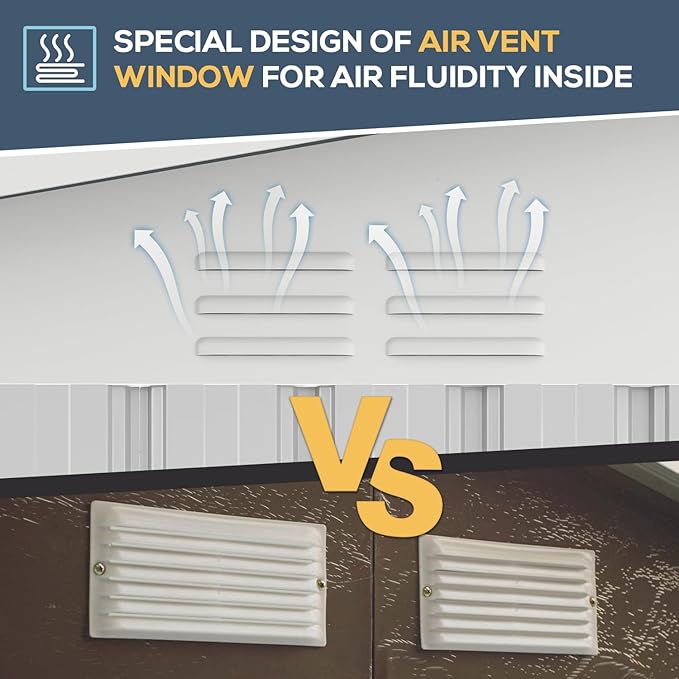 - Robust and Resilient: Enhanced metal plates contribute to the shed's weight of 275 lbs, surpassing cheaper alternatives and significantly reinforcing stability. Withstanding severe weather conditions, it exhibits exceptional wind resistance, reaching approximately 70 mph.