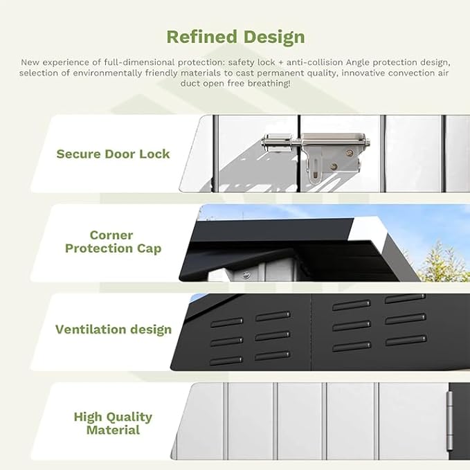 - Flexible Storage Space – Verify Size Before Purchase: Ample room to organize garden tools, bikes, and more! Maximize your storage potential—please check the detailed size guide to ensure perfect fit for your needs.