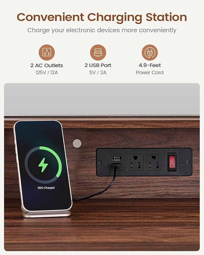 - 【Convenient Charging Station】There are 2 AC Outlets ,1 USB port and 1 Type-C port on the vanity desk, which provide convenience for charging your phone, earphone.and it is also more convenient to connect your hair dryer, and curling iron .