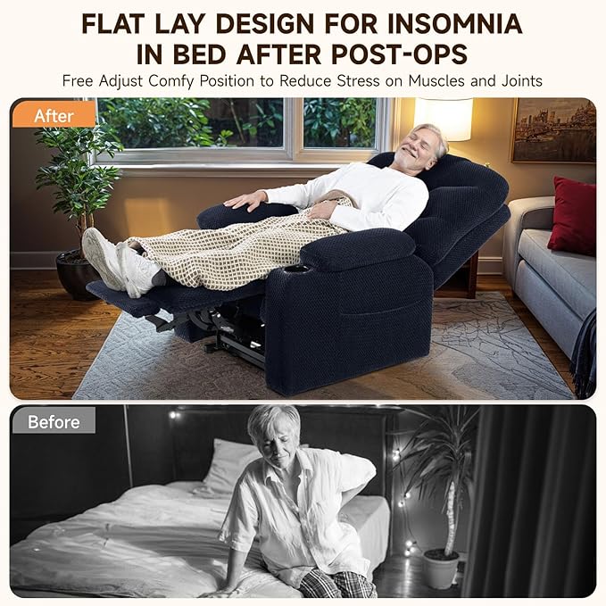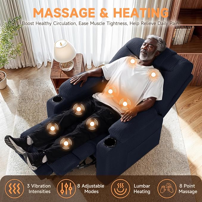 - 【Massage & Heated】- Experience relaxation with our lift chairs recliners for elderly. 8 vibration points targeting your back, lumbar, thighs, and legs, an advanced heating system focused on the lumbar area, providing warmth from 113℉ to 140℉.