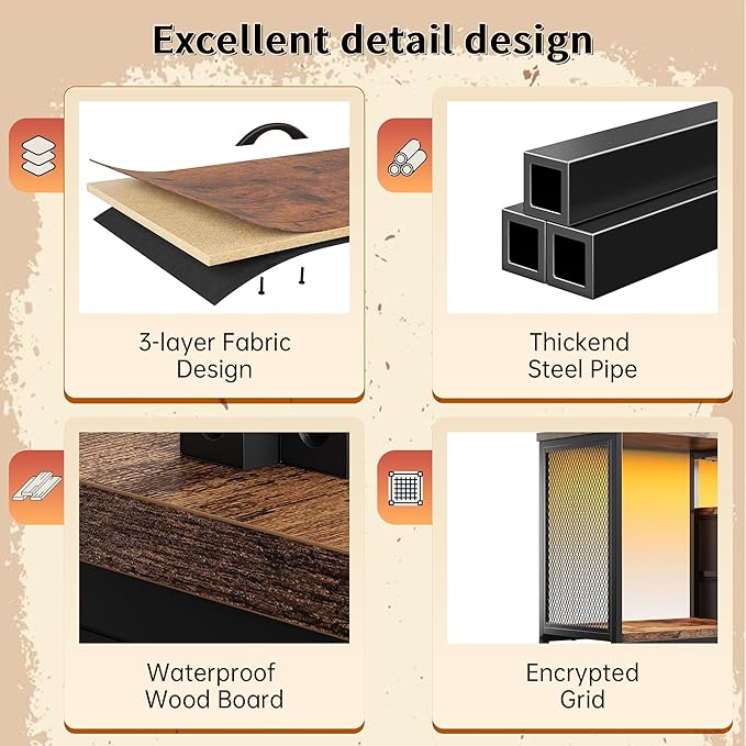 - Dresser TV Stand with Customizable LED Light: This TV stand with storage is equipped with a colorful LED light strip. It features 21 colors, 22 dynamic modes, 10 flicker frequencies, and 5 brightness grades, which can be controlled by remote control, you can freely adjust the brightness and colors for any scene to enhance the atmosphere of your room
