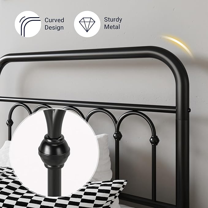 Allewie 14 Inches Twin Size Metal Platform Bed Frame with Victorian Style Curved Iron-Art Headboard/Footboard, Metal Slats Support, Easy Assembly, Under Bed Storage, No Box Spring Required, Black