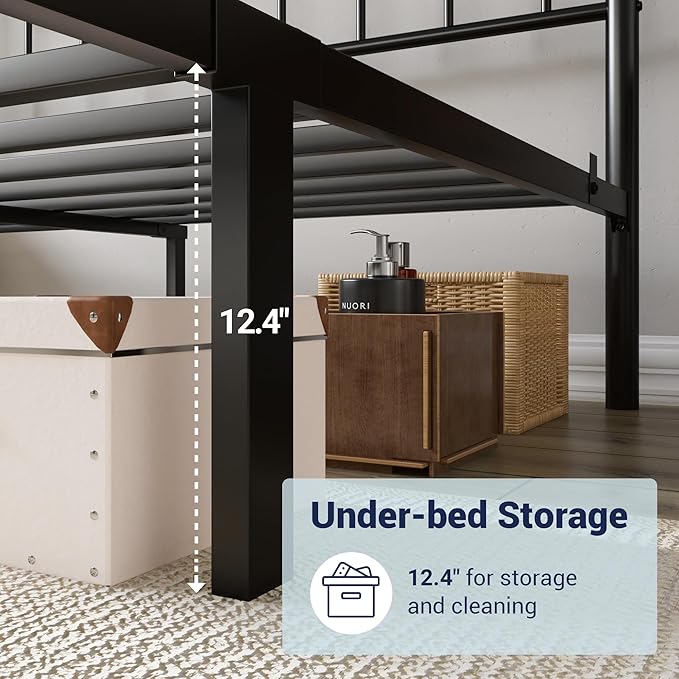 - Elevate Your Space: Discover a sleek, organized sanctuary with hidden under-bed storage. The 12.4-inch clearance is perfectly designed to store bins and belongings, effortlessly maintaining your bedroom's tidy aesthetic