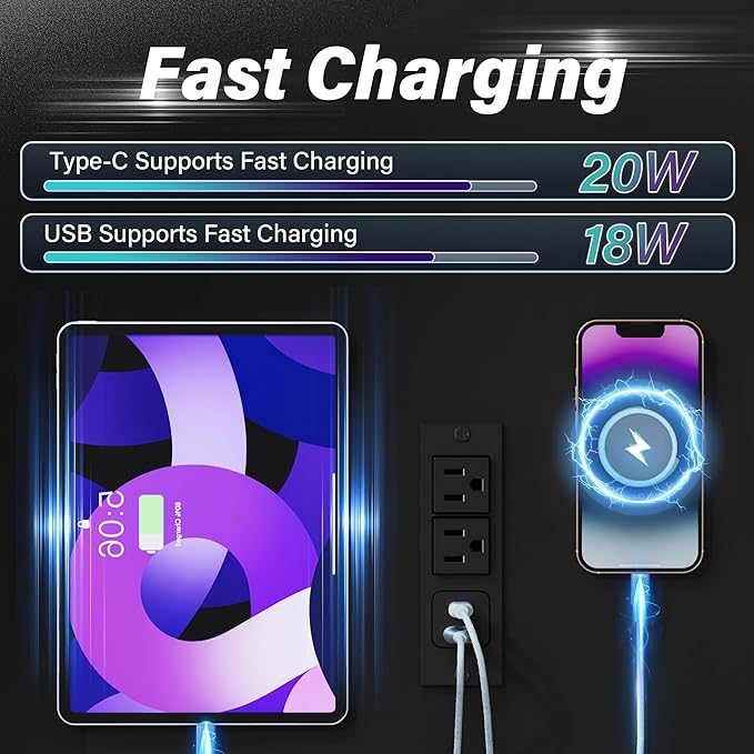 - Multi-functional fast-charging outlets: Integrated USB and Type-C fast-charging modules on the side for efficient charging of beauty devices, smartphones, and more. Say goodbye to the hassle of insufficient outlets and keep your vanity neat and organized.