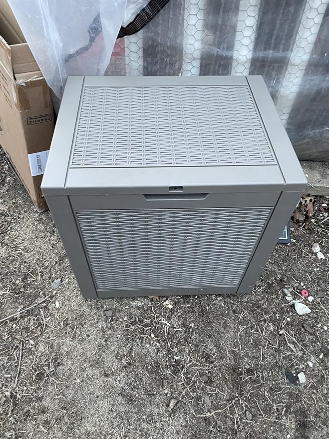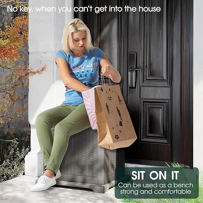 - đȘăSTABLE & WEATHER-RESISTANTă Crafted with a reinforced frame and durable high-density resin, this storage box withstands drops, pressure, sun exposure, rain, and snow. It stays stable and reliable, season after season, for long-lasting outdoor use.