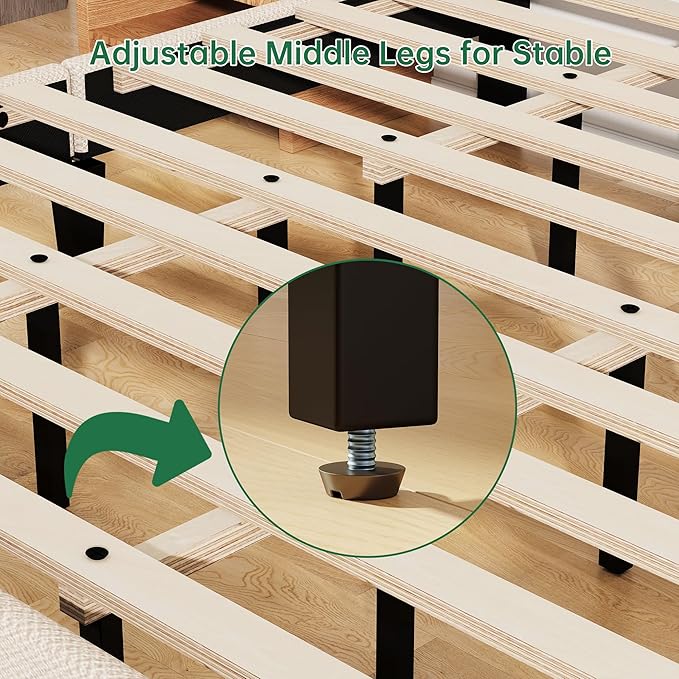 King Size Bed Frame with Headboard,Fabric Upholstered Platform Bed Frame with Wooden Slats Support,No Box Spring Needed/Non-Slip Without Noise/Easy Assembly, Beige
