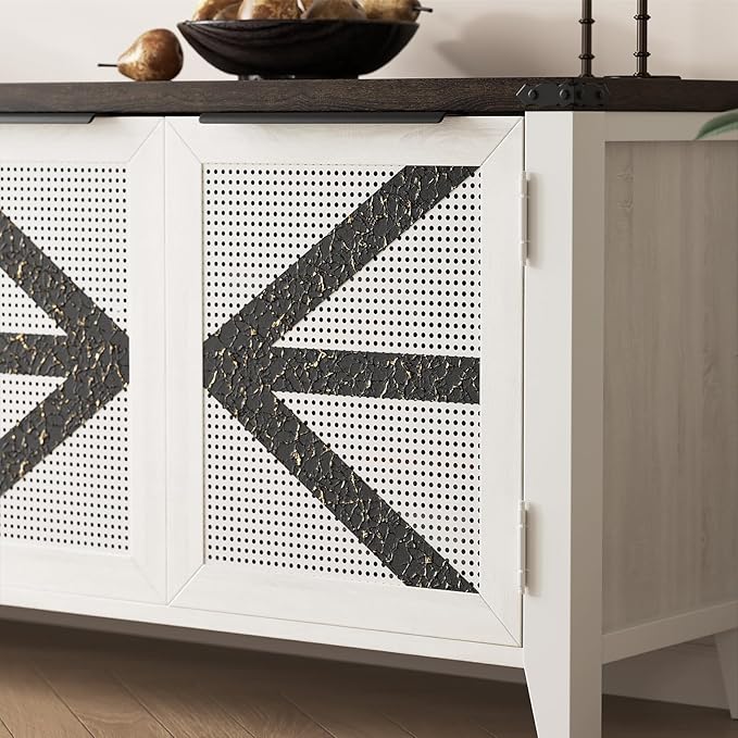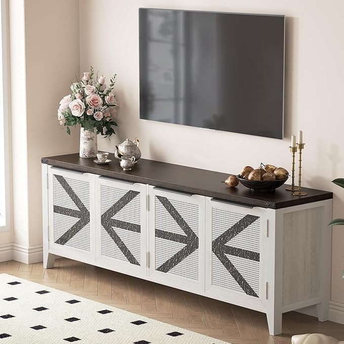 - 【Four-door storage】Equipped with 4 mesh-front doors and multiple shelves, this media console offers ample storage for DVDs, books, gaming consoles, and electronic accessories, keeping your space organized and clutter-free.