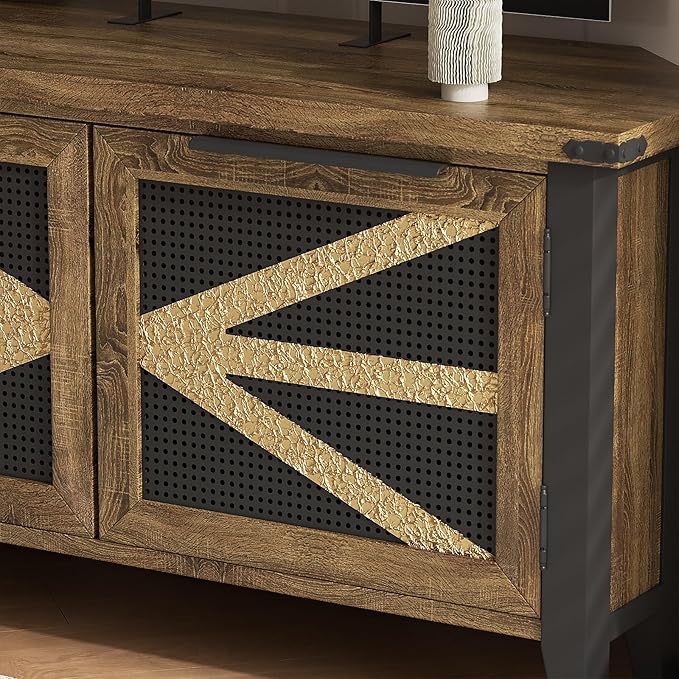 - 【Farmhouse Corner TV Stand for 50 Inch TV】 Designed to fit perfectly in any corner, this rustic TV stand saves floor space while supporting flat screen TVs up to 50 inches. A stylish farmhouse finish adds charm to your living room or bedroom.