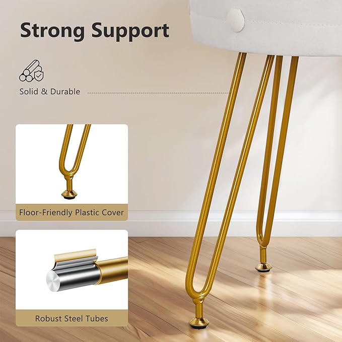 - Anti-Slip: The metal legs of this vanity stools are equipped with anti-slip pads, ensuring safety while protecting the floor. The legs are filled with metal for added stability during use