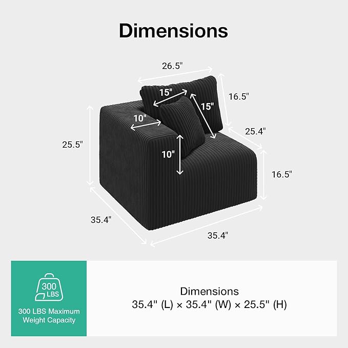 - Plush, Wrinkle-Resistant Corduroy Fabric: Sink into ultra-soft, easy-care corduroy that stays smooth and comfy. This durable, wrinkle-resistant fabric stands up to kid play, adding a touch of practical luxury to any family-friendly space.