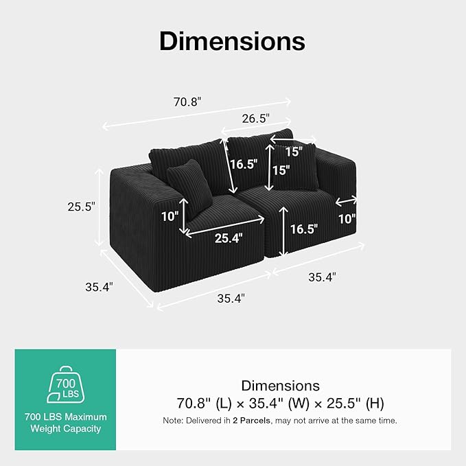 - Multiple Packages: The modular sectional sofa will be shipped in multiple packages and may arrive at different times. If you have any questions or need assistance regarding your cloud sectional couch, please reach out to us as soon as possible.