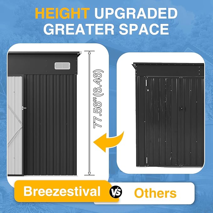 - Heightening Design to Meet Vertical Storage Demands: With an increased height of approximately 10 inches, this tool shed effortlessly accommodates ladders, gardening utensils, long-handled tools, and other oversized items. The innovative tiered shelf design optimizes space utilization, boosting it by 30%. Say goodbye to clutter and congestion as you organize your belongings efficiently, making the most of every inch of available space.
