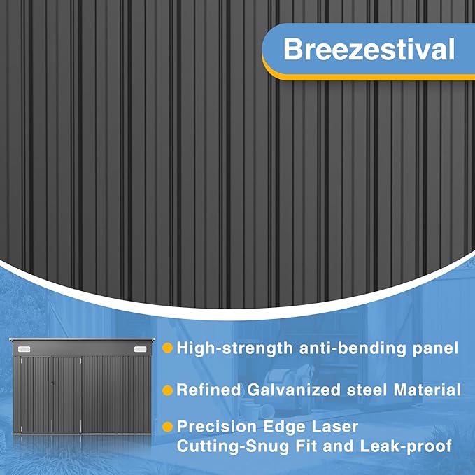 - Galvanized Steel Panels for Unmatched Strength and Durability: Crafted from high-strength galvanized steel, the panels of this tool shed are built to last. They effectively resist rust, ensuring long-term durability even in harsh outdoor conditions. Meticulously engineered for structural integrity, these panels offer exceptional compressive strength, providing a stable and safe storage solution for garden sheds, generator storage, and more.