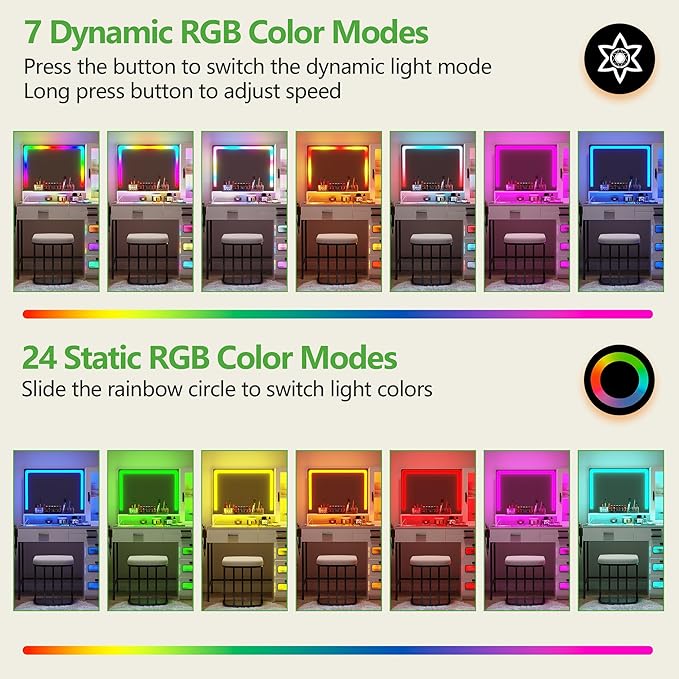 - 【Colorful Lights】This vanity set with a total of 24 static lights and 7 dynamic lights is perfect for festivals, events, parties, performances and exhibitions, making your party the highlight.