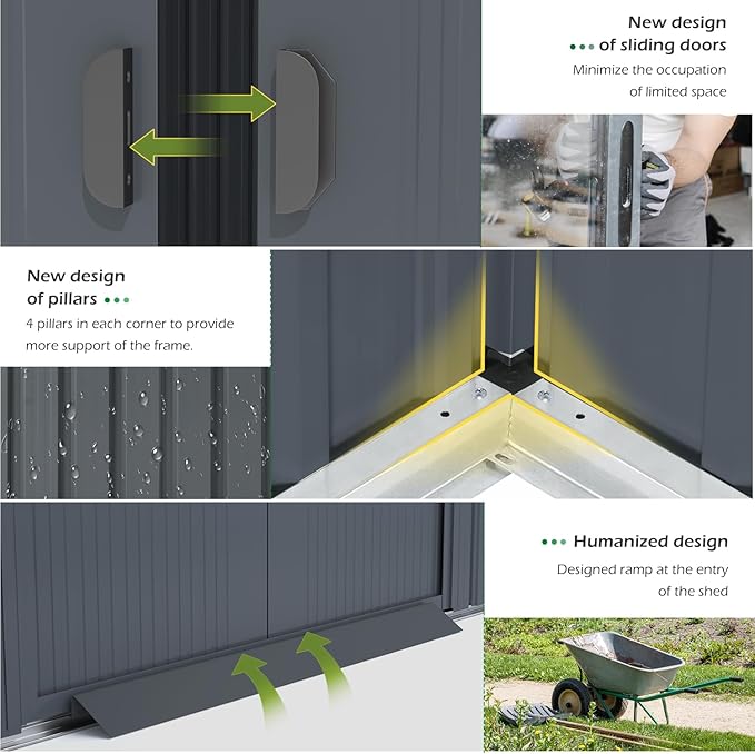 - Robust and Resilient: Enhanced metal plates contribute to the shed's weight of 275 lbs, surpassing cheaper alternatives and significantly reinforcing stability. Withstanding severe weather conditions, it exhibits exceptional wind resistance, reaching approximately 70 mph.