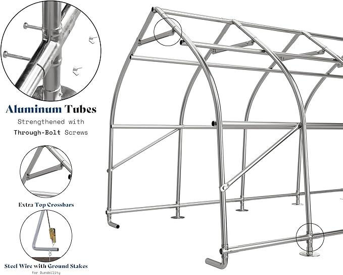 - 【Built to Withstand Extreme Weather】Reinforced aluminum frame and top crossbar safely support up to 132 lbs. Roll-up doors resist Level 6 wind when closed, Level 8 when open—delivering reliable, year-round protection for your vehicles