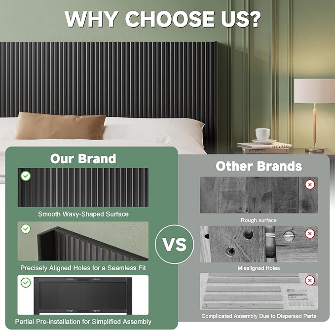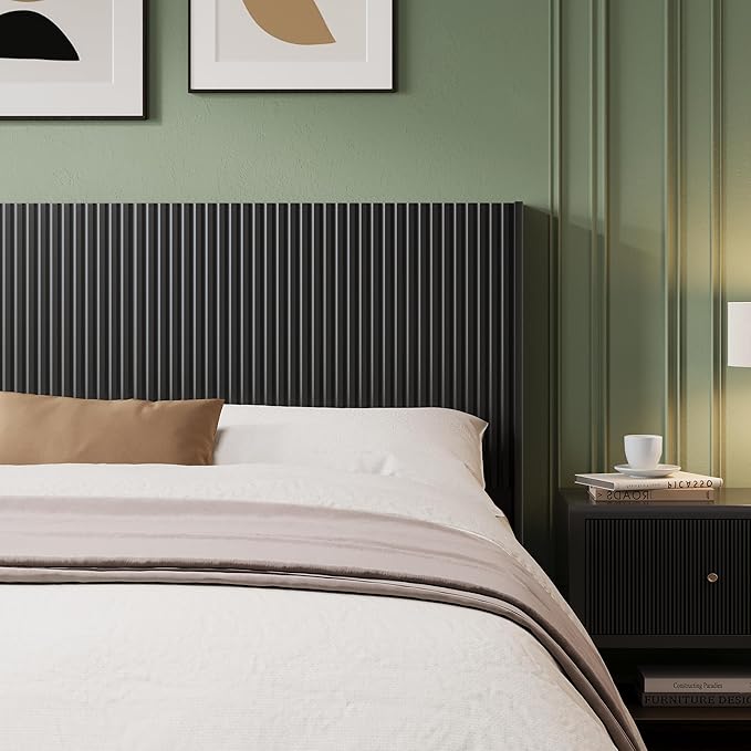 - Unique and Elegant Design: Our wooden headboard queen features a unique wavy grooved panel design combined with a modern artistic style. The wingback design on both sides enhances its overall stylish appearance, making it a perfect fit for any decor style