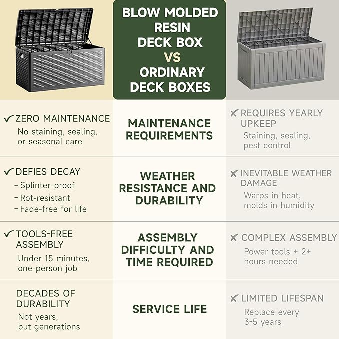 - VERSATILE SPACE SOLUTION: Ideal for decluttering patios, pool areas, decks, and gardens; securely stores outdoor cushions, gardening tools, seasonal items. Weatherproof design suits indoor/outdoor use.