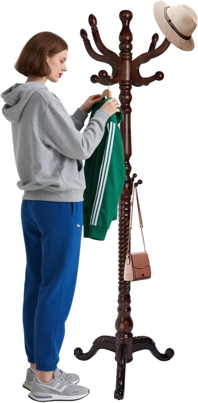 - VERSATILE & SPACE-SAVING:Designed for entryways, bedrooms, offices, dorms, and more, this wooden coat rack provides ample hanging space without taking up much room. Lightweight andeasy to move, it fits neatly in corners while keeping your essentials within reach.