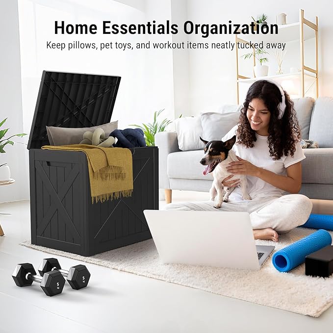 - 【Multifunctional Storage】- Organize your outdoor essentials with ease using this deck box, designed to store cushions, pool towels, gardening tools, or even secure your porch deliveries, it also serves as a small side table, enhancing both storage and practicality in your space
