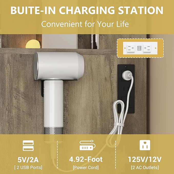 - 【Convenient Charging Station & Hair Dryer Rack】The kids/girls vanity comes with a power strip, including 2 AC outlets and 2 USB ports, through which you can charge and use electronic devices at the same time. In addition, our vanity table set provides you with a hair dryer rack to keep your hair dryer and hair curler within arm’s reach