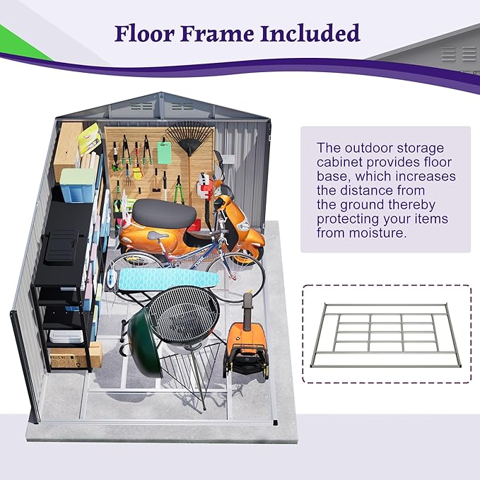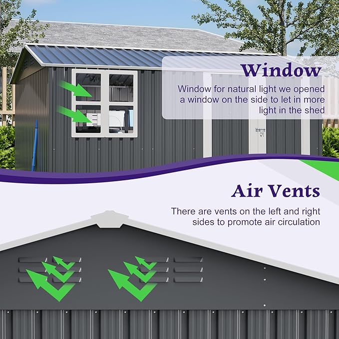 - đ ăMaximize Your Outdoor StorageăTransform your outdoor space with this versatile metal shed, perfect for your patio, backyard, garden, or lawn. Its thoughtfully designed interior provides ample room to neatly store lawn equipment, gardening tools, seasonal items, bicycles, or even create a secure hobby workshop, keeping everything organized and easily accessible