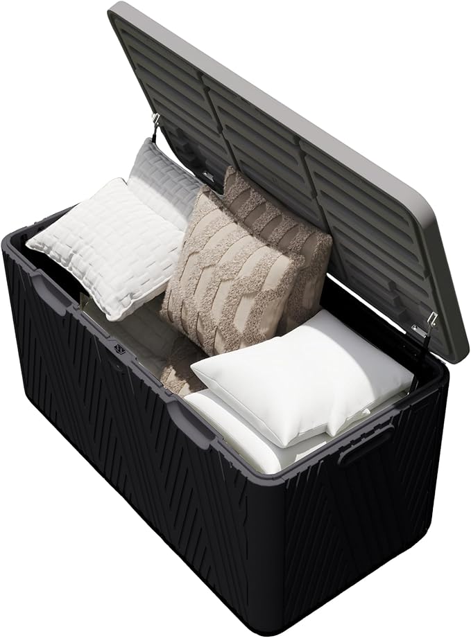 Kingdura 110 Gallon Outdoor Storage Box, Waterproof Resin Deck Box for Indoor and Outdoor Use, Lockable Storage Container for Patio Furniture Cushions Garden Tools (Black, 110 Gallon)
