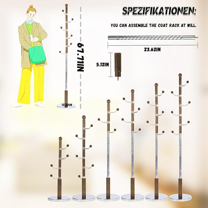 - Exquisite Design:This freestanding coat rack features a distinctive tree design with antler-shaped branches, double-thickened round base offers excellent stability. coat rack stand adding a touch of nature-inspired elegance to your space.